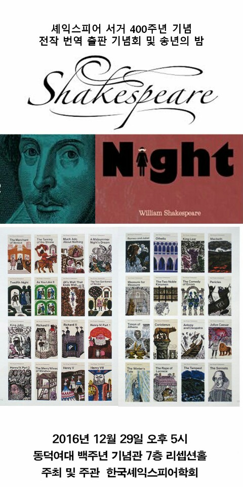 셰익스피어학회 서거 400주년 기념 전작번역 출판기념회 및 송연의 밤에 초대합니다.