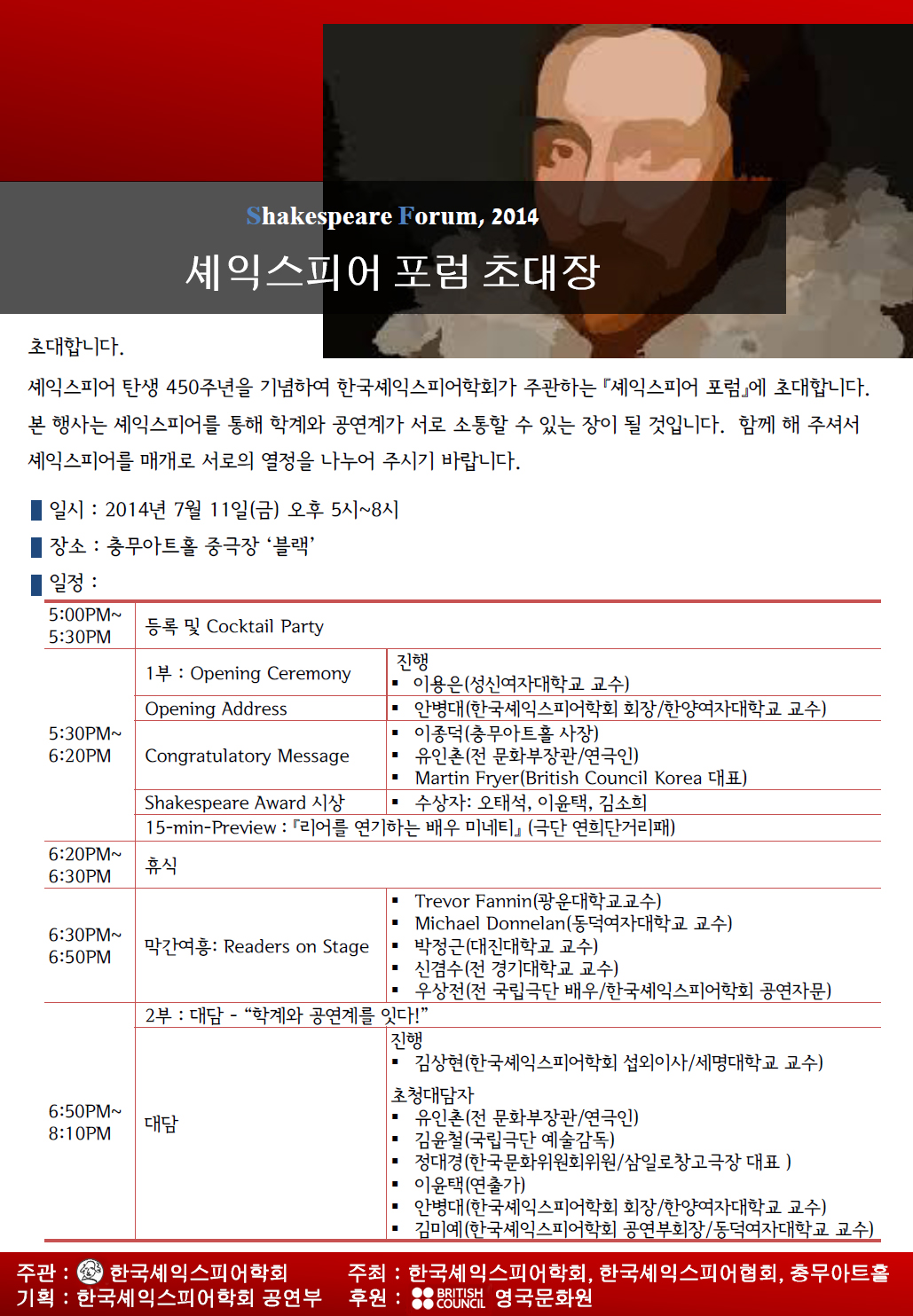 [공지]셰익스피어 포럼: 2014년 7월11일(금) 17:00~20:00/충무아트홀 중극장 블랙