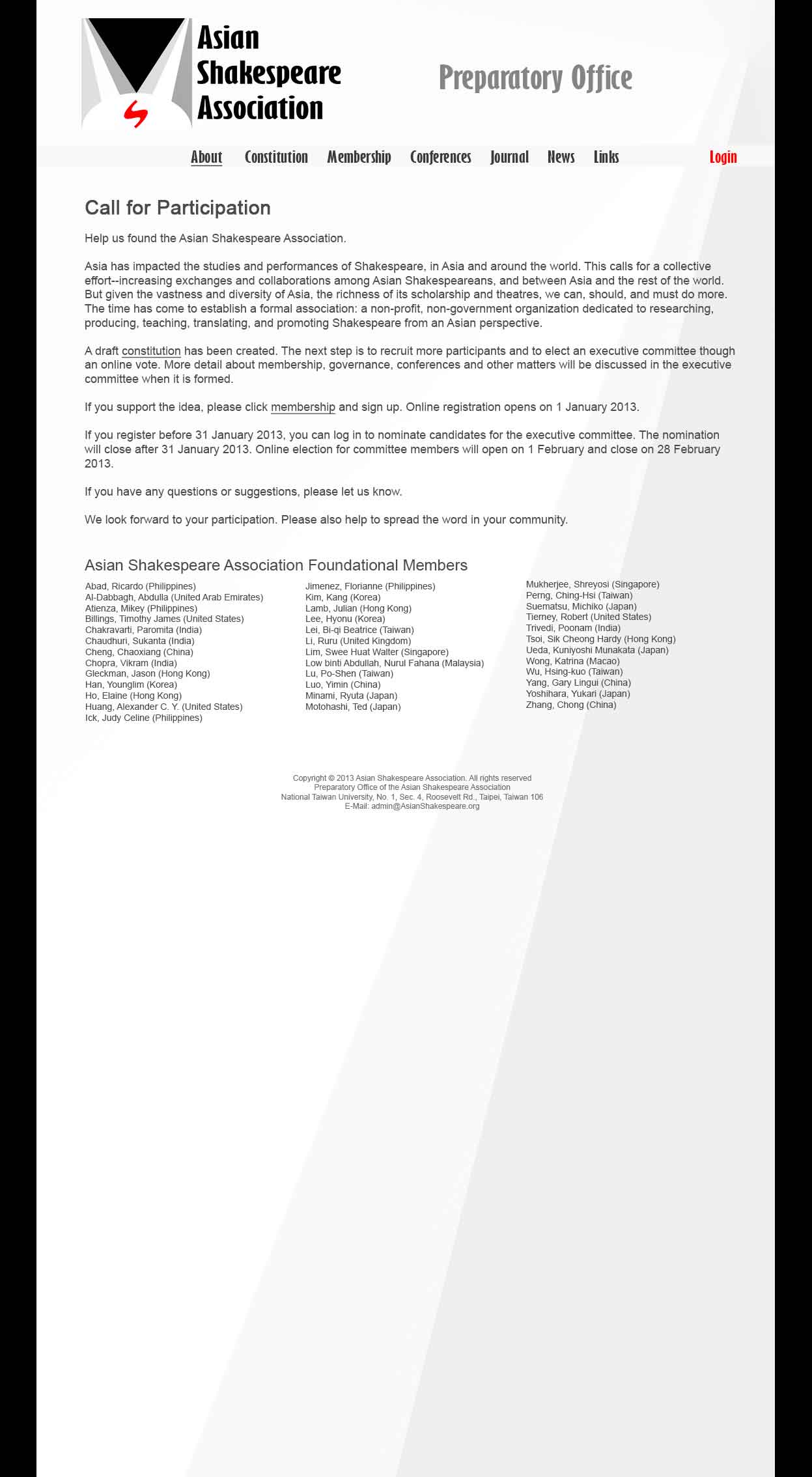 Asian Shakespeare Association을 창립할 계획이고 회원을 모집하고 있습니다.