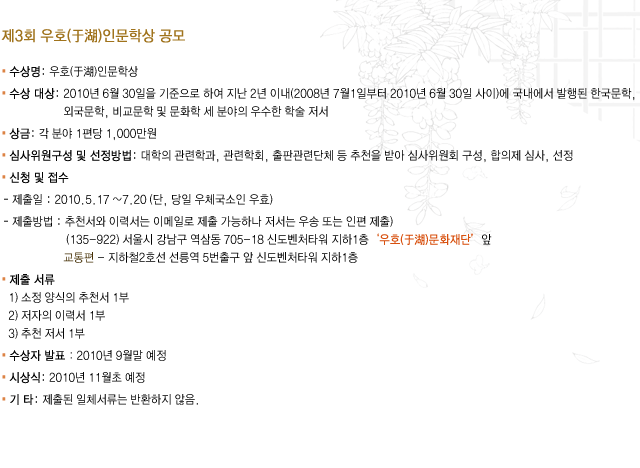 2. (재)우호문화재단(제3회 우호인문학상 후보자 추천의뢰)