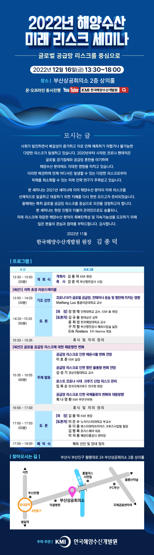 - 유튜브에서 “2022 해양수산 미래 리스크 세미나” 검색
